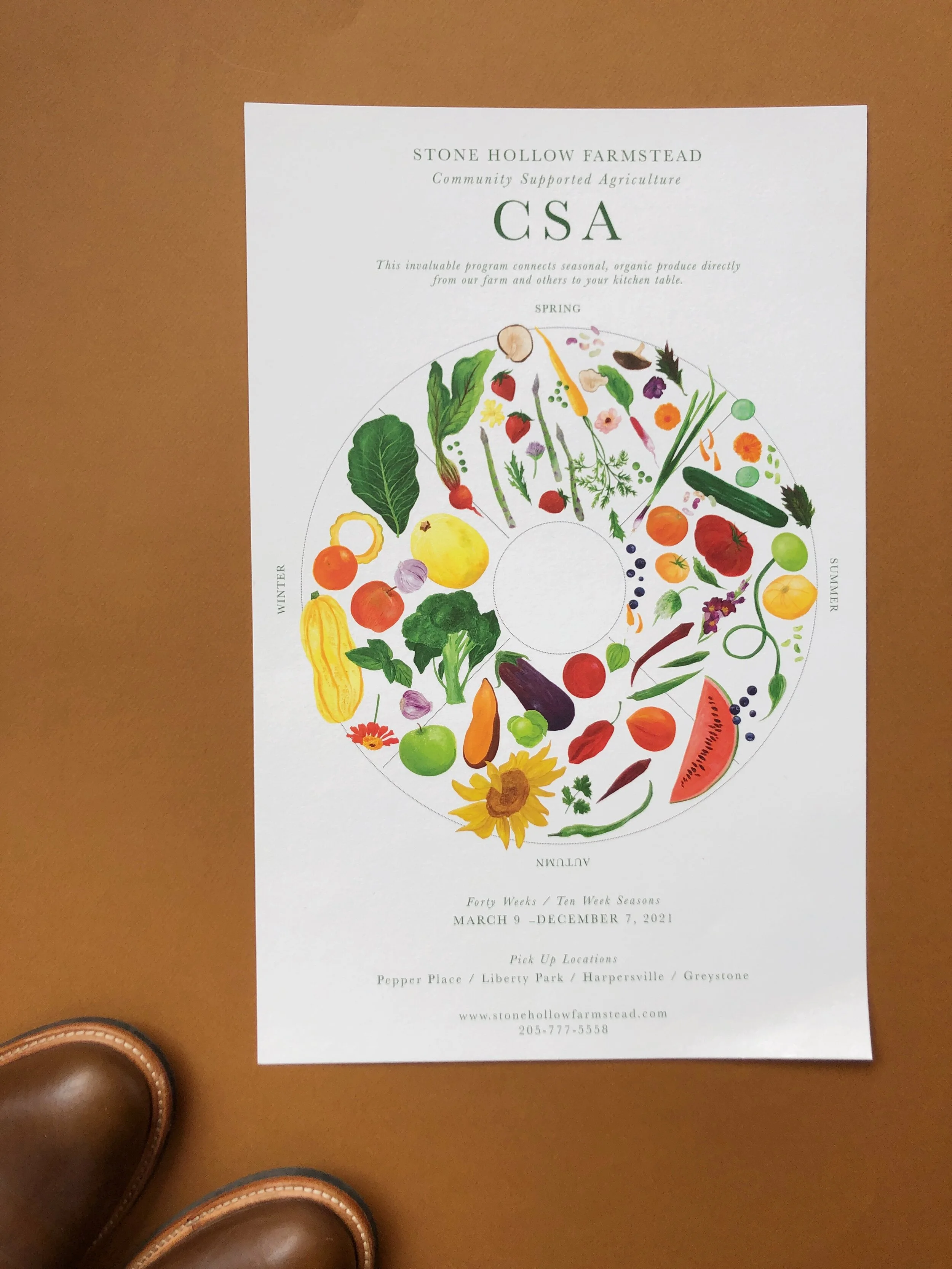 Stone Hollow Farmstead is a thriving local farm that hosts a CSA program. For those who aren’t familiar, CSA is where you essentially “buy in” before the growing season begins to help ease some of the burden on the farmers since they have to financially pour so much in long before a harvest is ready. CSA members are investing in their local agriculture which is amazing and powerful! We decided that we needed a direction for this campaign that could be used for not just one, but two CSA years.