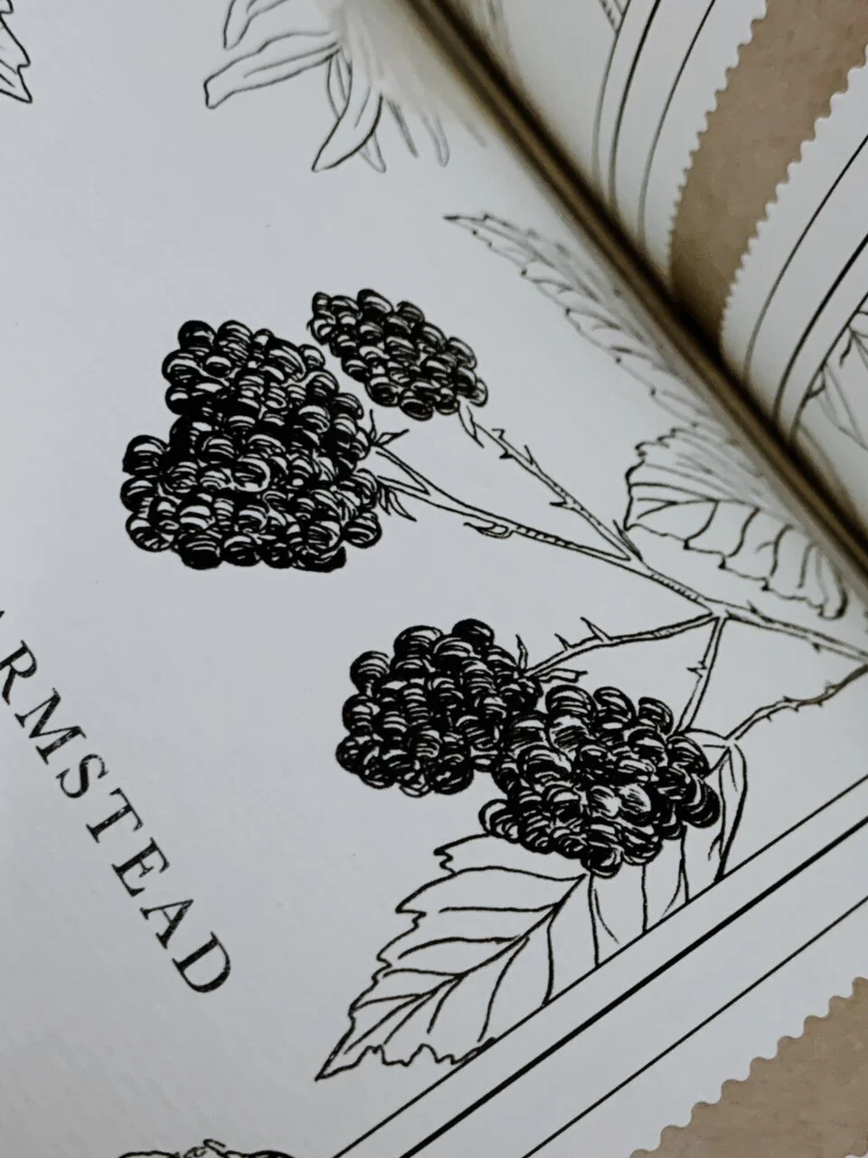 Illustrated tobacco flowers, blackberries, tomatoes, nasturtium, and more with an oblique pen and ink! Formatted using Adobe Photoshop and Illustrator!