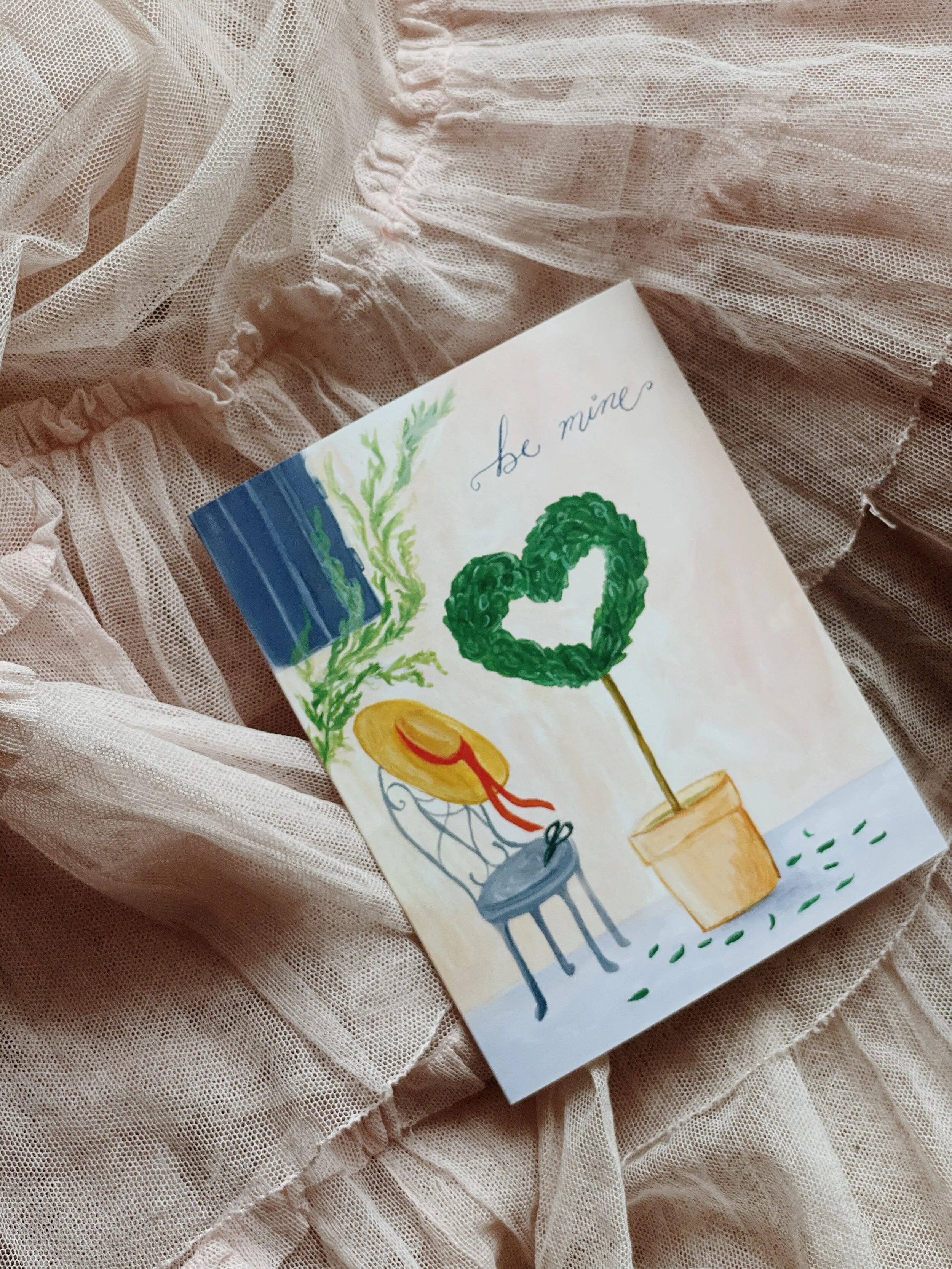 The 2021 regency drama that took a socially-starved populace and turned them all into cottage-core romantics. My wisteria draped card is featuring the famous “I Burn For You” phrase uttered by the Duke himself. Acrylic gouache.